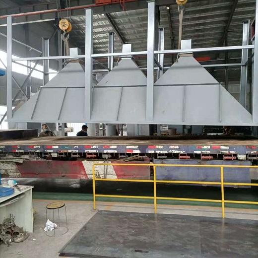 布袋除塵器的保溫層厚度為100MM,各加強筋上為50MM,保溫材料選用高溫玻璃棉(TYPE1000,δ=50),在厚度方向上分二層鋪設(shè),層間應(yīng)錯縫,錯縫距離不小于板長或板寬的三分之一,拼逢應(yīng)嚴密平整,高溫玻璃棉的外層均應(yīng)鋪設(shè)鍍鋅六角鐵絲網(wǎng),再用自鎖墊片壓住。